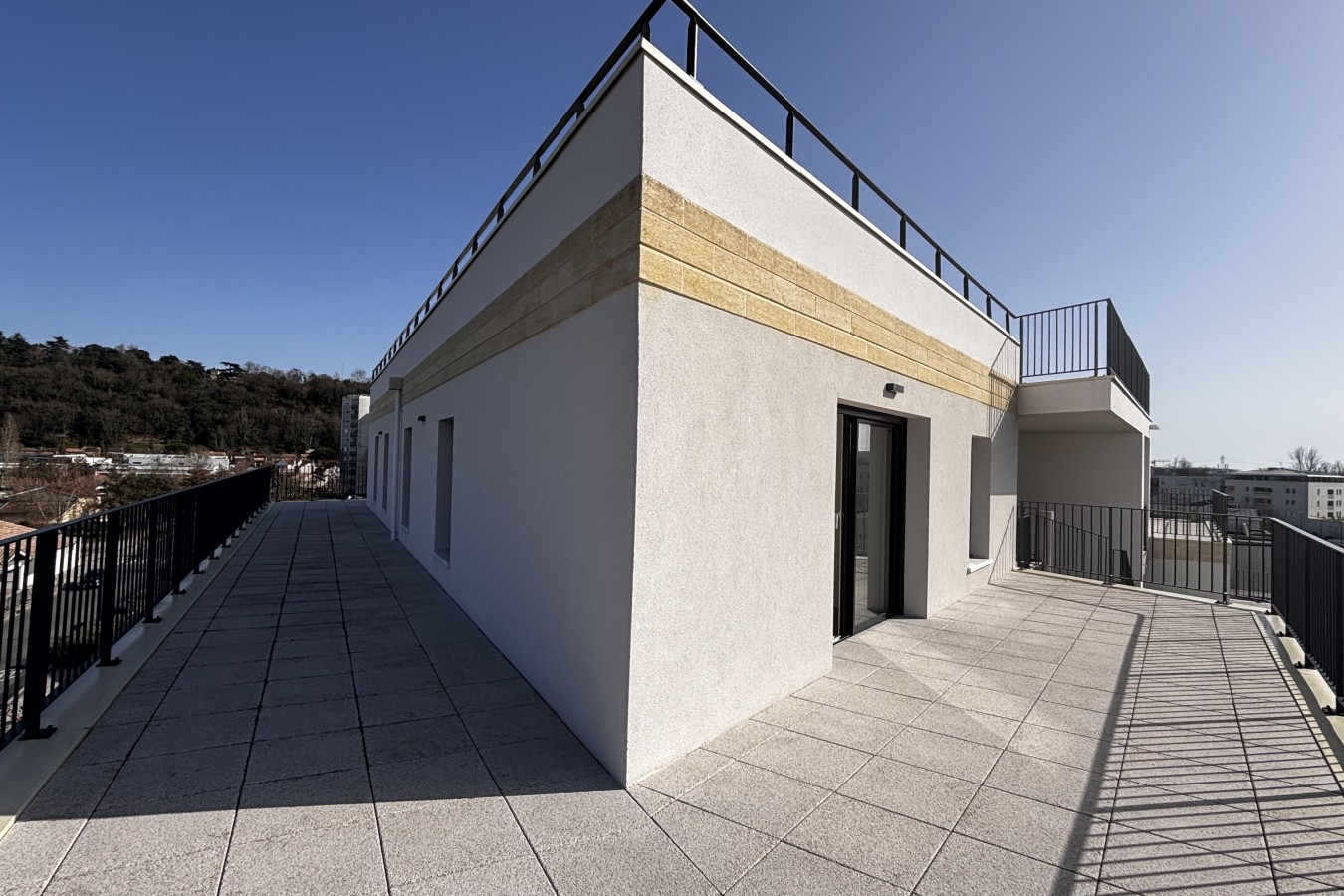Grand séjour de 35 m² avec cuisine ouverte, prolongé par une exceptionnelle terrasse de 85 m² faisant le tour complet de l’appartement. Un véritable espace extérieur à ciel ouvert, idéal pour profiter pleinement de chaque moment de la journée.