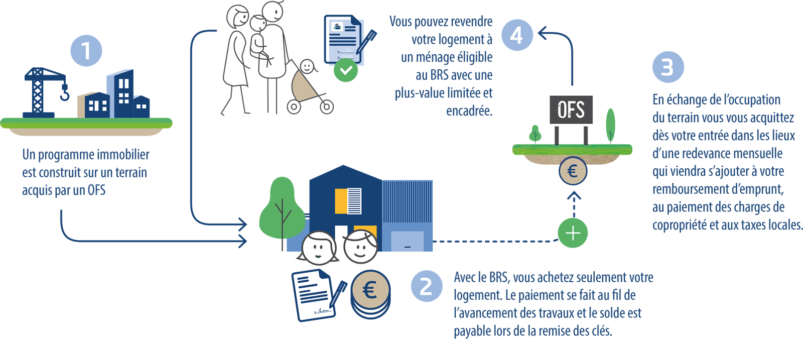 Avec le BRS, vous achetez les murs de votre logement sur un terrain acquis par un organisme foncier solidaire (OFS), structure à but non lucratif qui continue d’en rester propriétaire. Une manière efficace de faire baisser le coût d’acquisition !